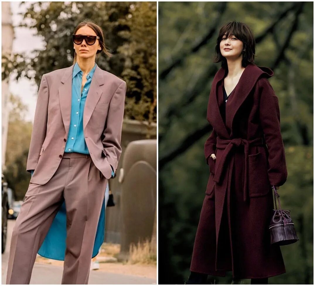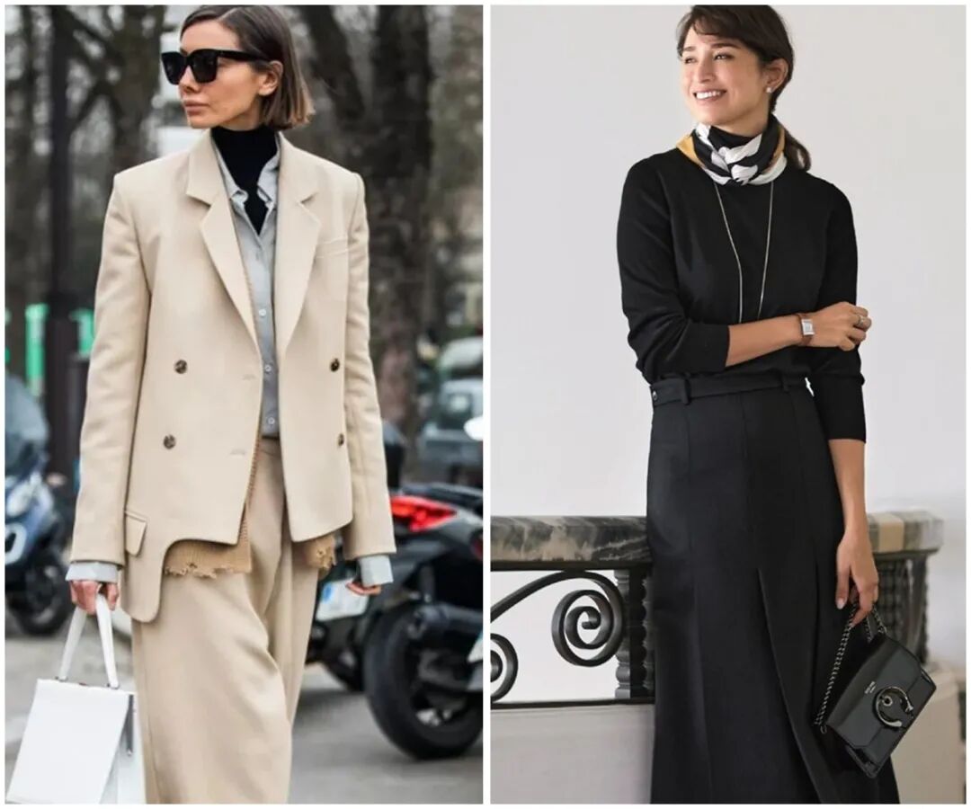各种中性色混搭黑白灰驼色这些中性色是她们衣柜里的主色调,经常把其中两个甚至三个色混搭在一起。 ▼她们的衣柜里也有彩色单品,其中蓝色是最受欢迎的。各种饱和度的蓝都有。从外套到毛衣、包包,都能看到蓝色。▼