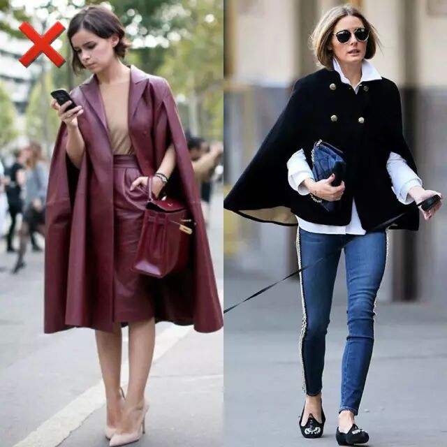 个子小的女生一定要选择短款斗篷大衣,长款略微显得累赘和繁琐。感觉腿也被压住了5厘米!▼