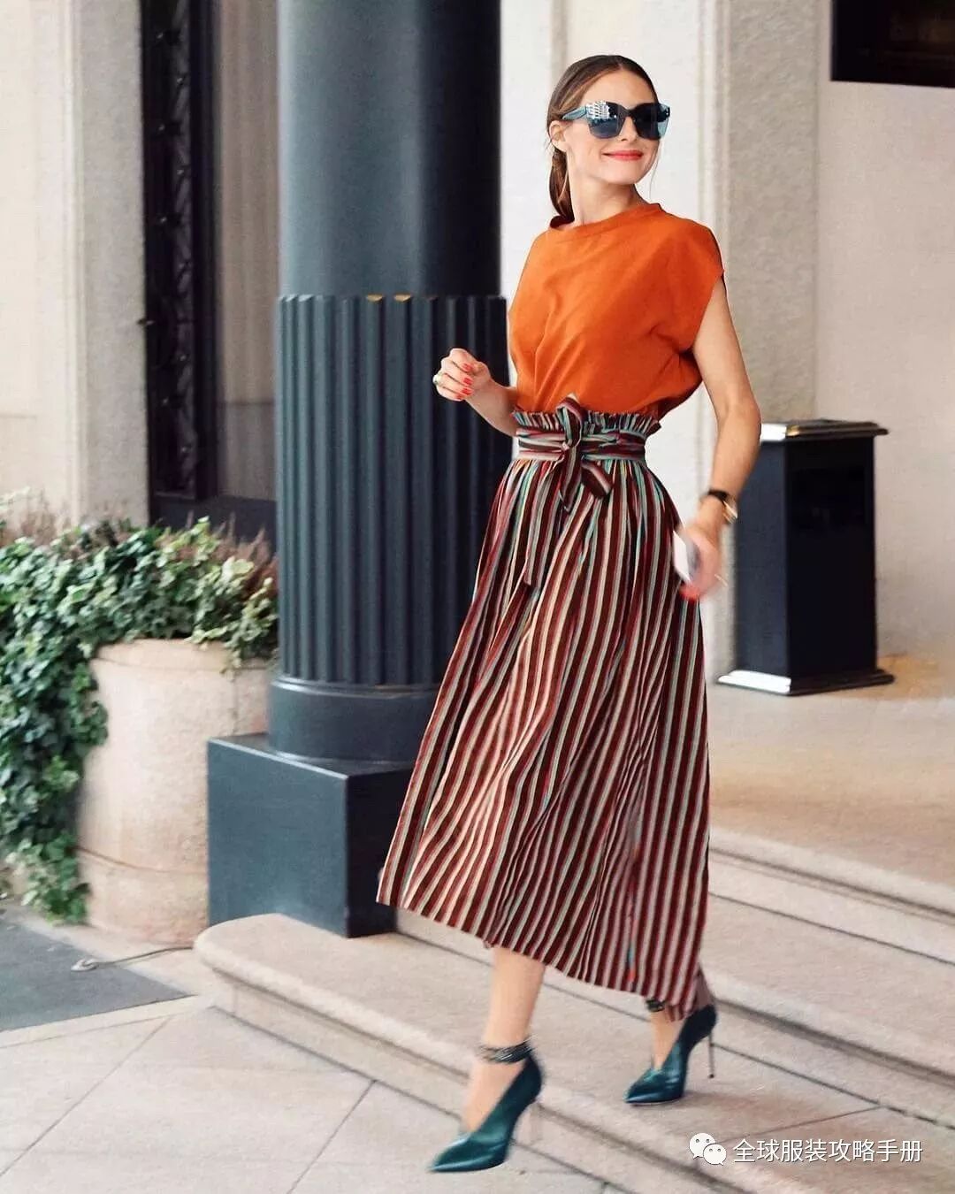 裙子穿搭的关键便是塑造高腰线,