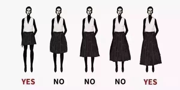 裙长在膝盖下时,裙子越长越显高,