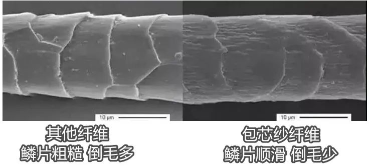 对比其他纤维,它表面鳞片排列紧致、整齐,倒毛少,更细腻。