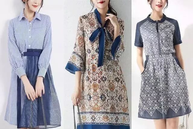 圆领的领口相比于衬衫领和v领来说,更有亲和力。牛仔蓝和雾霾蓝叠加的两件式连衣裙,圆领的领口展现出精致的锁骨,搭配一条银质项链,就很有精致的气质。大伞状的裙摆很好的修饰了下半身,宽胯粗腿都可以很好的修饰。