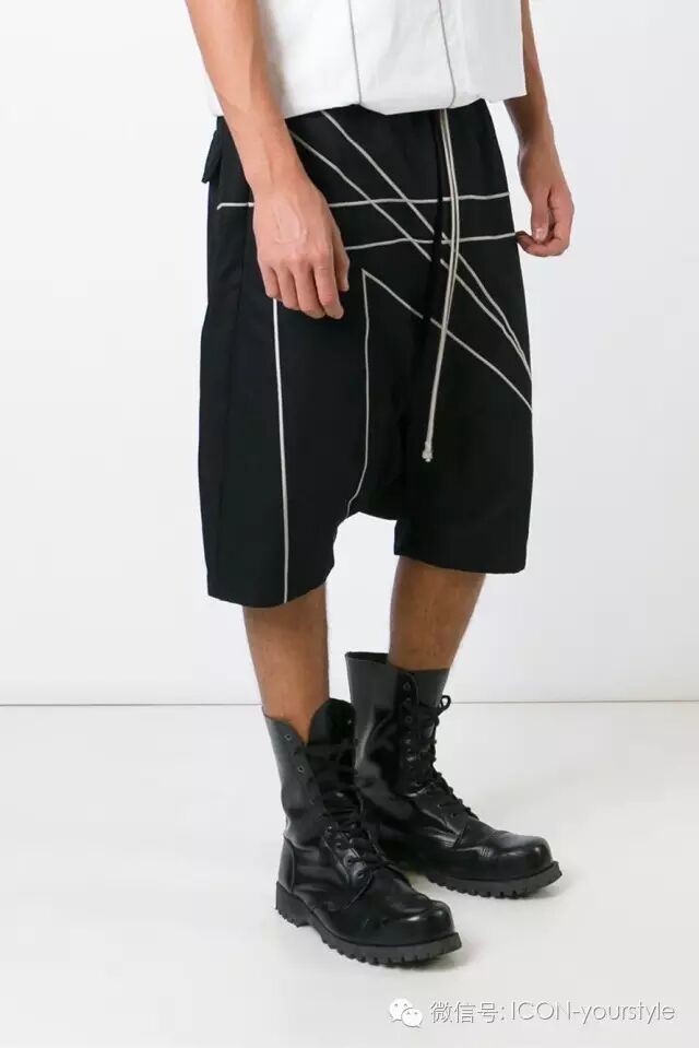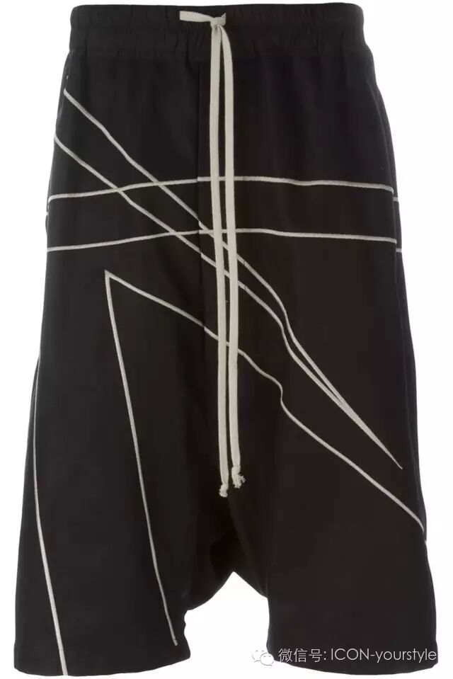 Rick Owens白色条纹装饰黑色运动短裤ICON售价:¥4455