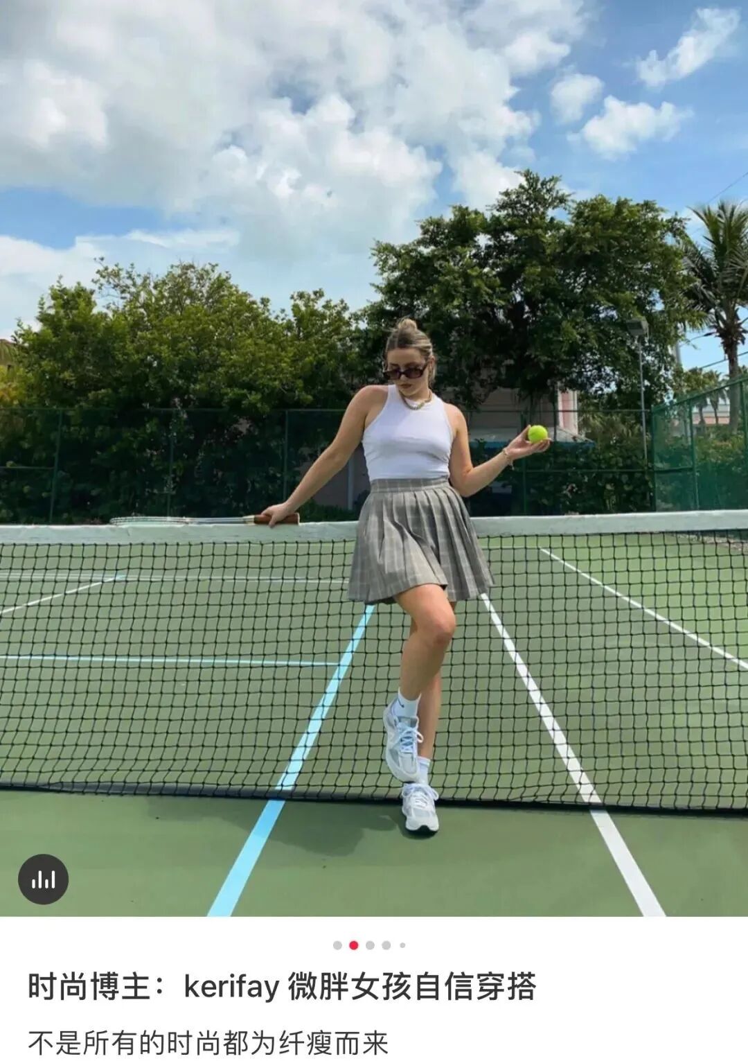 最难的还是全身肉肉星人吧,就像博主Noelle,她就是属于全身肉肉都有一点多的那种,蝴蝶袖、大胸、小肚腩、宽臀围一个不少。