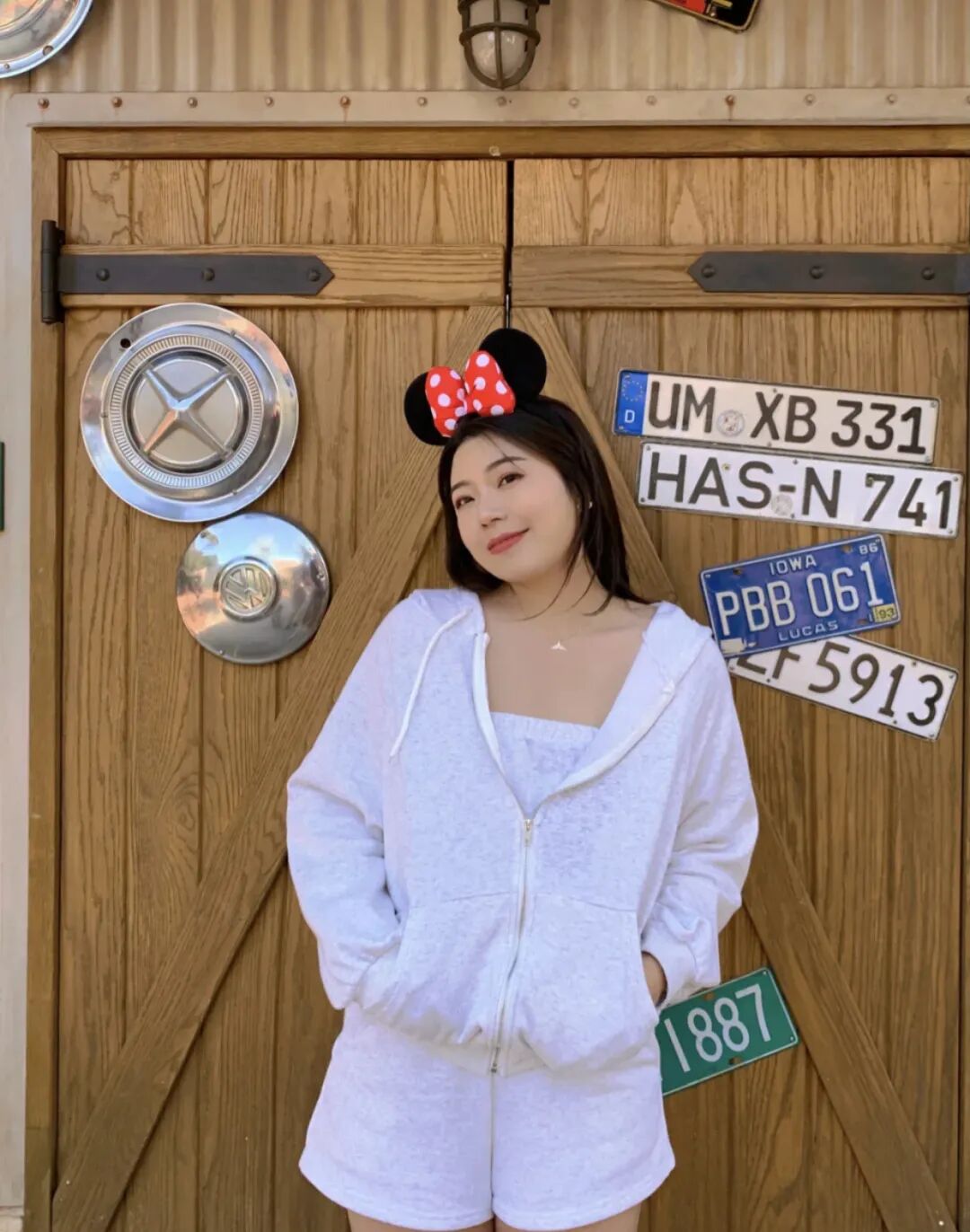 虽没有苗条的身材,但她还是很自信,看她的穿搭就知道了,像肚子有肉的女生一般不敢尝试的短装,她却敢穿,而且各种款式都愿意尝试。