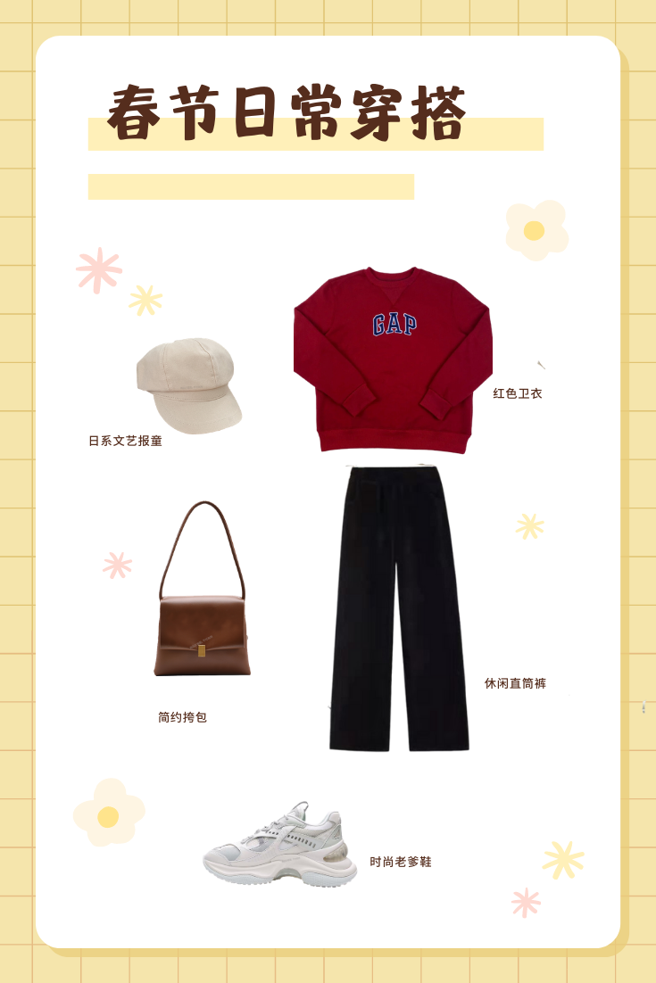 走亲访友也是春节的保留项目了。红色是春节的象征元素,既衬托肤色,还符合吉祥欢庆的节日氛围。