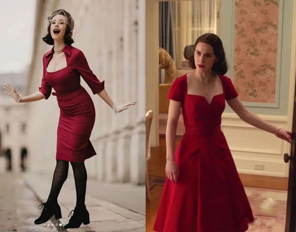 Miss Alba Banana的造型是赫本+梦露的结合版,看过《麦瑟尔夫人》的朋友肯定会发现她模仿了很多麦瑟尔日常穿搭。