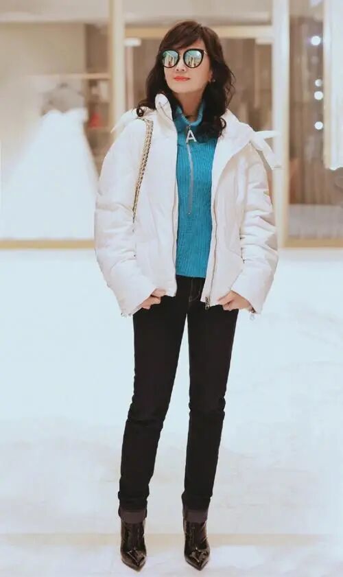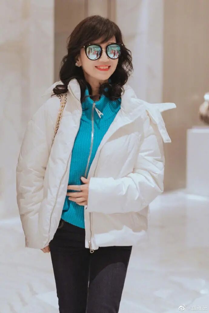 其实如果仔细观察朋友们就会发现,赵雅芝的大衣穿搭其实非常简约,利用一双性白色的长靴就搭配了冬季衣橱里的所有大衣,这种“一鞋多穿”的搭配技巧大家也是可以借鉴的。看完了赵雅芝的大衣穿搭,我们也来学习一下她的羽绒服的搭配技巧吧。