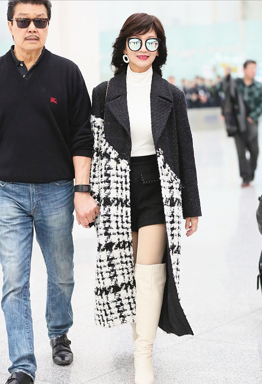 赵雅芝穿衣真“心机”,把小腿藏进亮皮靴,穿潮装看着就年轻不少
