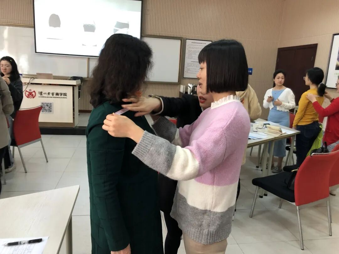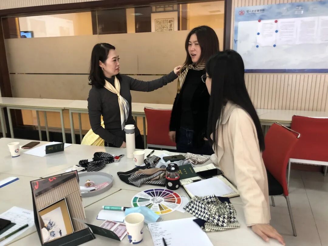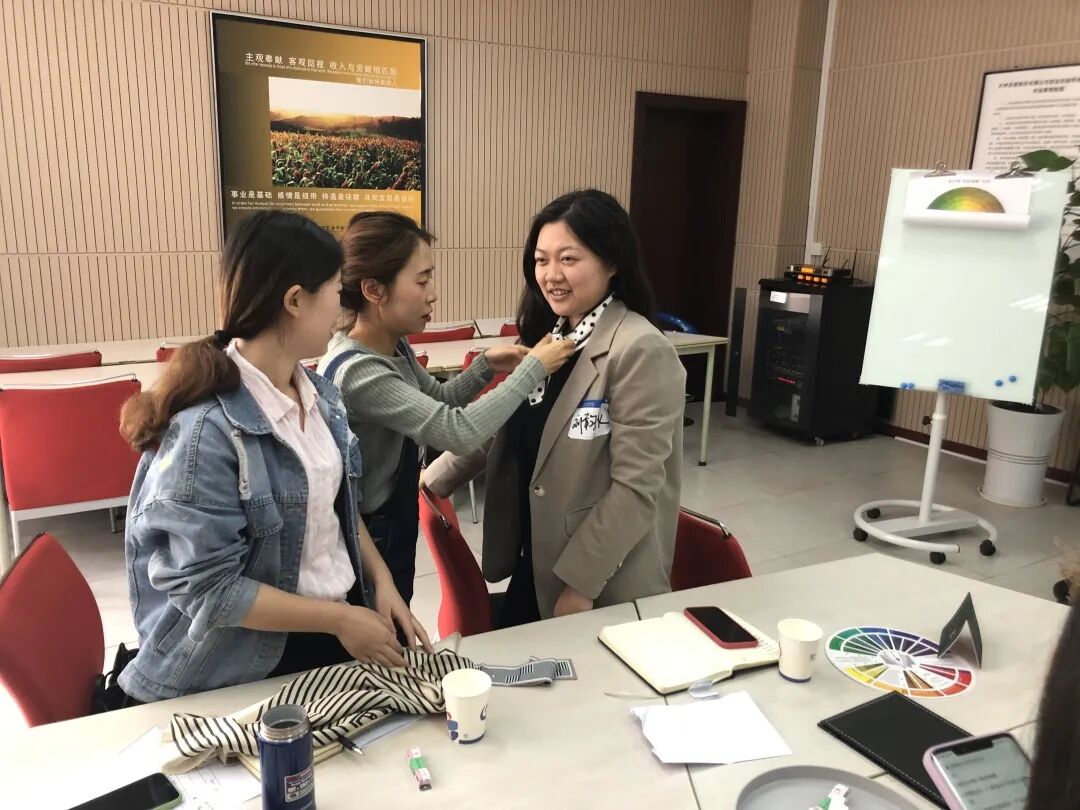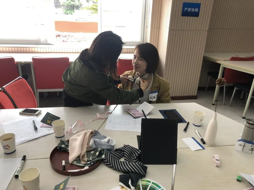 本次培训通过体验式授课方式,将讲授环节加入形体测量、配饰搭配等练习,通过“实操演练”给学员“亲历性”体验,将职场穿搭技巧结合自身特点,融会贯通!