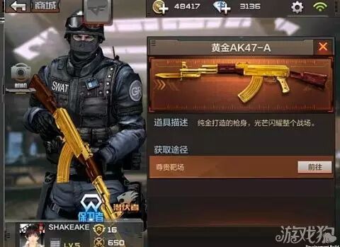 黄金AK47不禁代表着尊贵与霸气,它更代表着男人那追逐梦想的心。AK系列的钢是众所周知的,即使配备防弹头盔也可以轻松破防,只要枪够钢只要枪够狠就一定能够带你走向胜利。