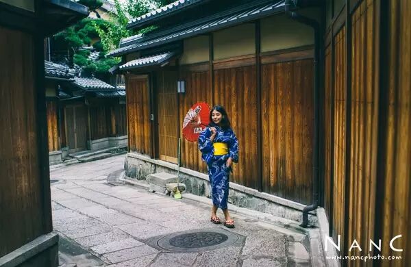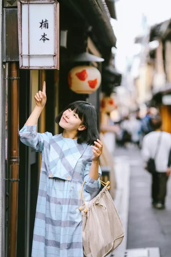 在京都古老的街道,除了和服和它们非常搭调,一些vintage的连衣裙也能跟融入其中。