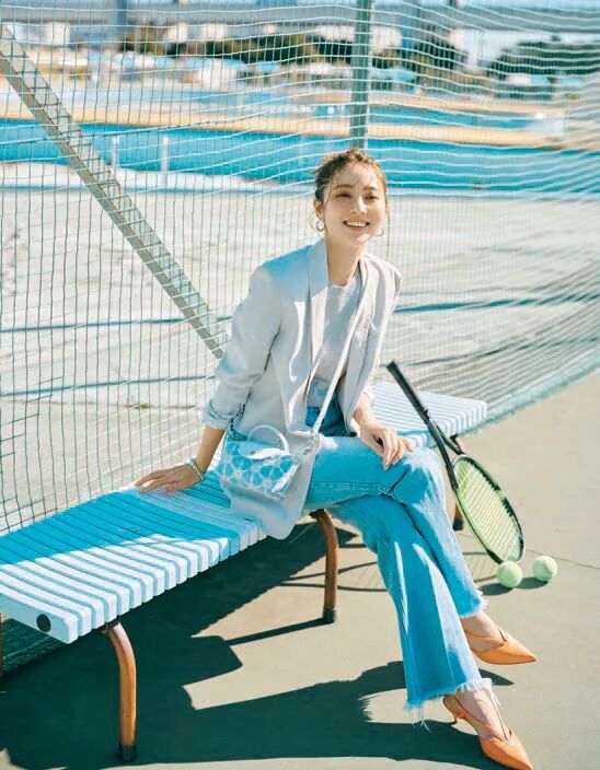 经典的西装外套×牛仔裤组合,搭配可爱包就显新鲜