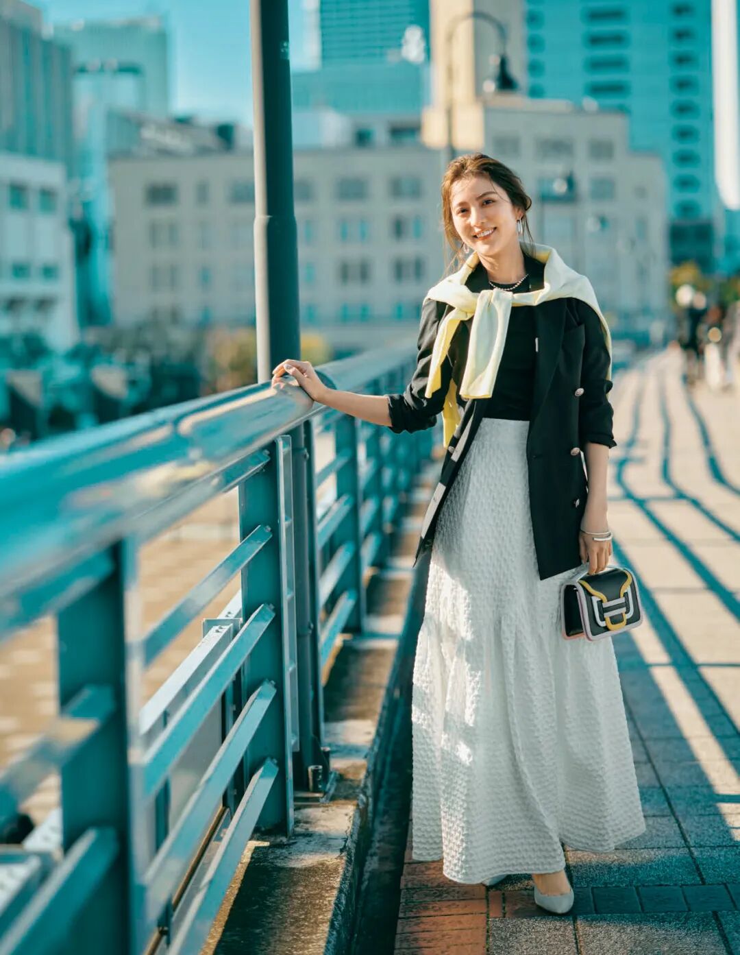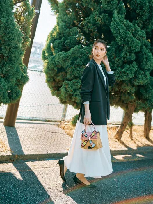 打底衫和包的颜色相互呼应,提升整体搭配的完成度。