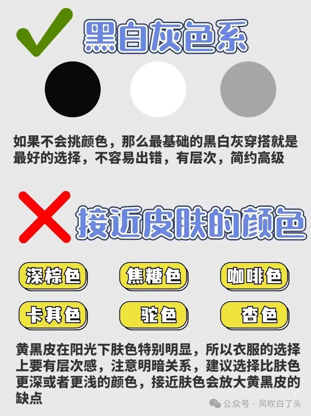 当然,在选择穿搭颜色时,也有一些需要避免的颜色。这些颜色可能会让黑皮肤男生看起来更加暗沉,因此需要特别注意。