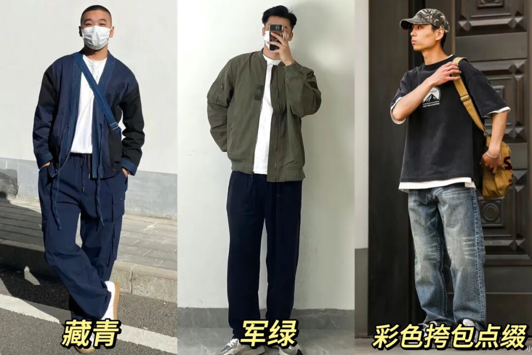 可以考虑下沉稳酷帅的藏青、硬朗阳刚的军绿;如果很喜欢亮眼的彩色,可以采用小面积搭配的方式,做一个点缀就好。