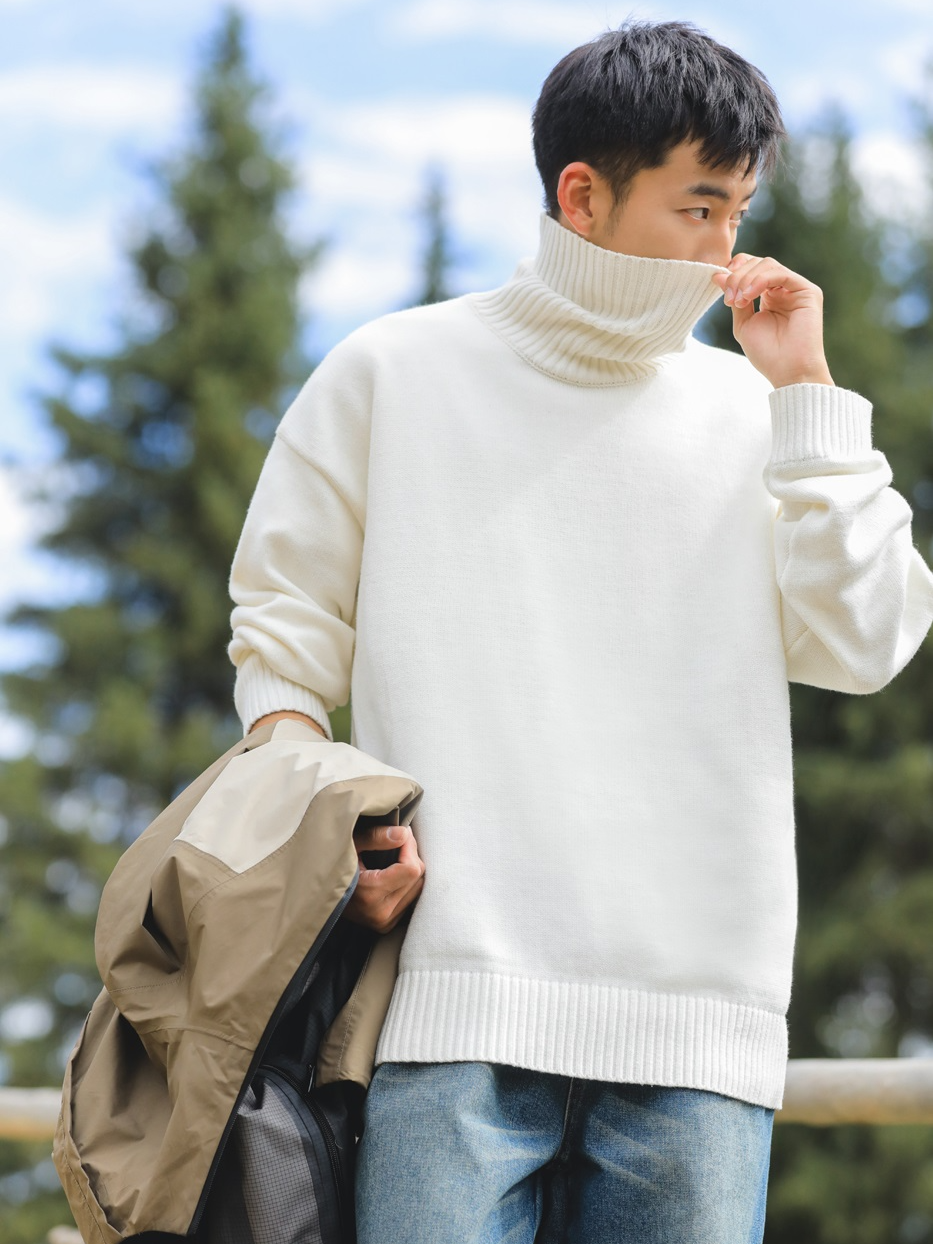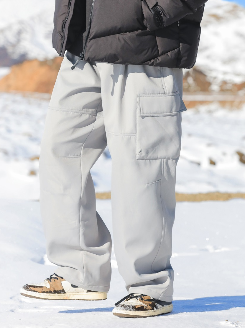 内搭米白色高领毛衣,很舒适亲肤的面料,不易起球变形;搭配户外运动工装裤,内里是加绒的,很保暖,口袋还做了不对称设计,搭配灰白色超惊艳!