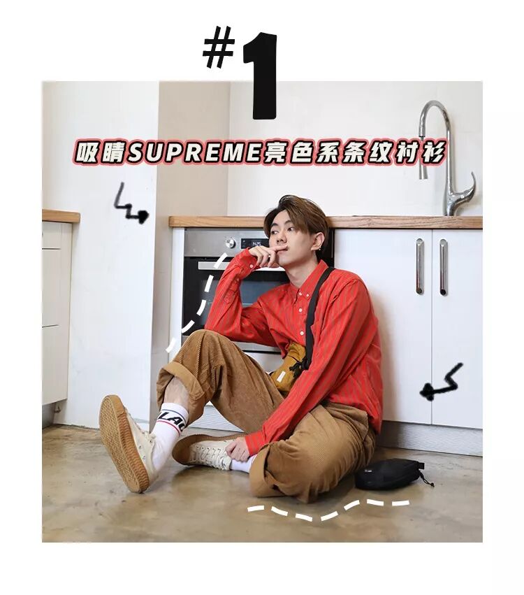 这件亮色系的条纹衬衫来自大家都很喜欢的Supreme,是我在伦敦实体店看到一眼后就马上买下的单品。最喜欢的是它的颜色,不是正红而且蕃茄红🍅的颜色,仔细看会jio得这个颜色很特别,也耐看!