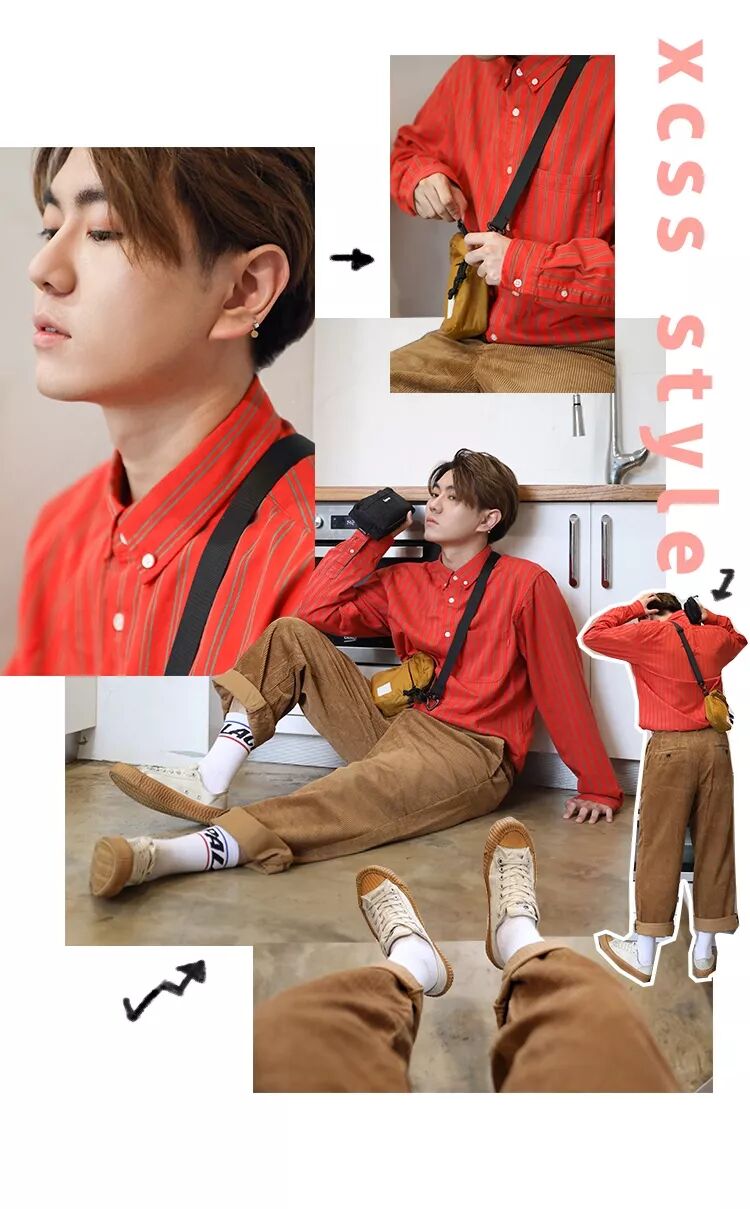 有的男生会惧怕这类亮色系的衬衫,但是其实只要搭配得好就会很吸睛,不过太多复杂的单品,像我只是挑了一条GU的灯芯绒长裤和穿了一双800年没有洗的Excelsior帆布鞋就足够好看,也很日常~