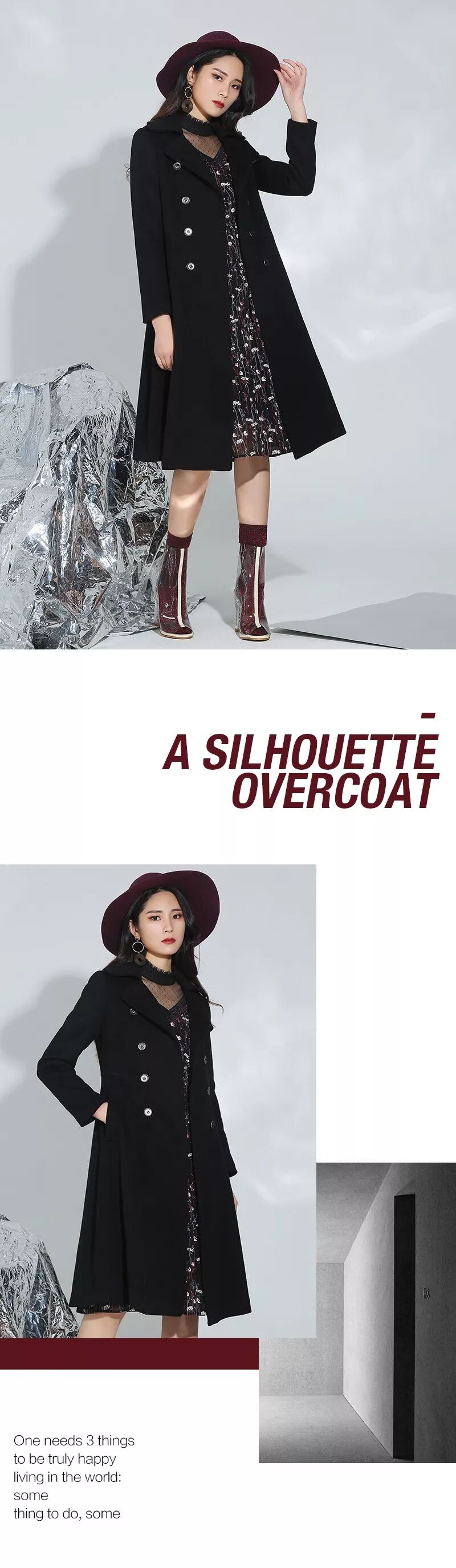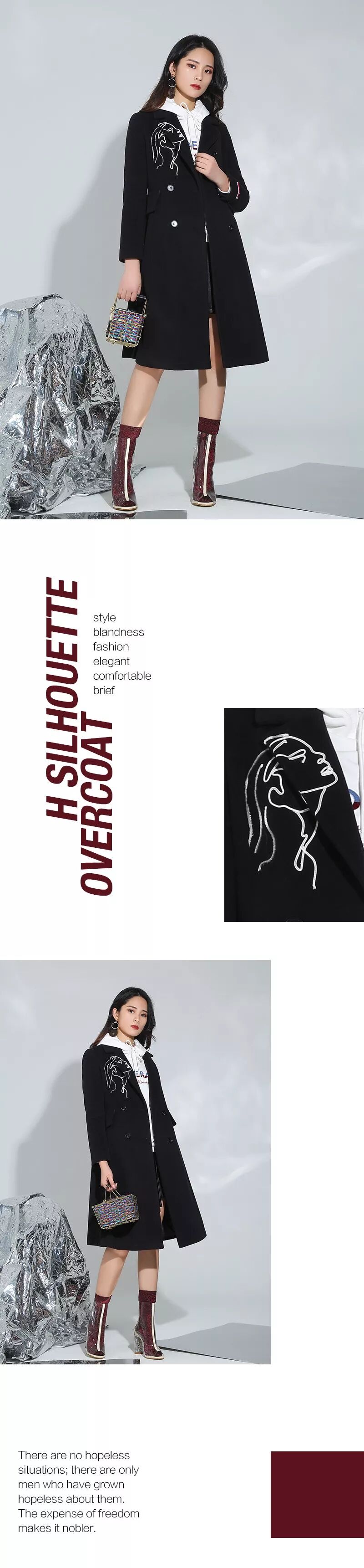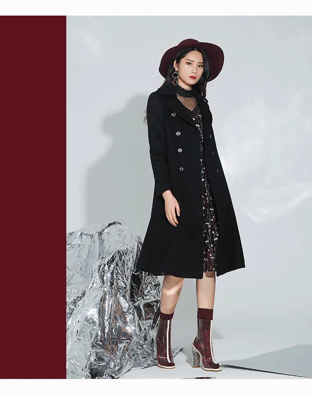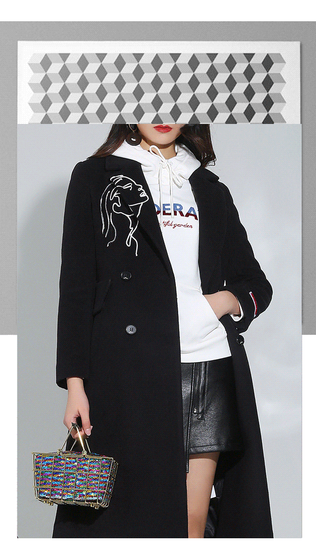 让黑色H型大衣看点十足,