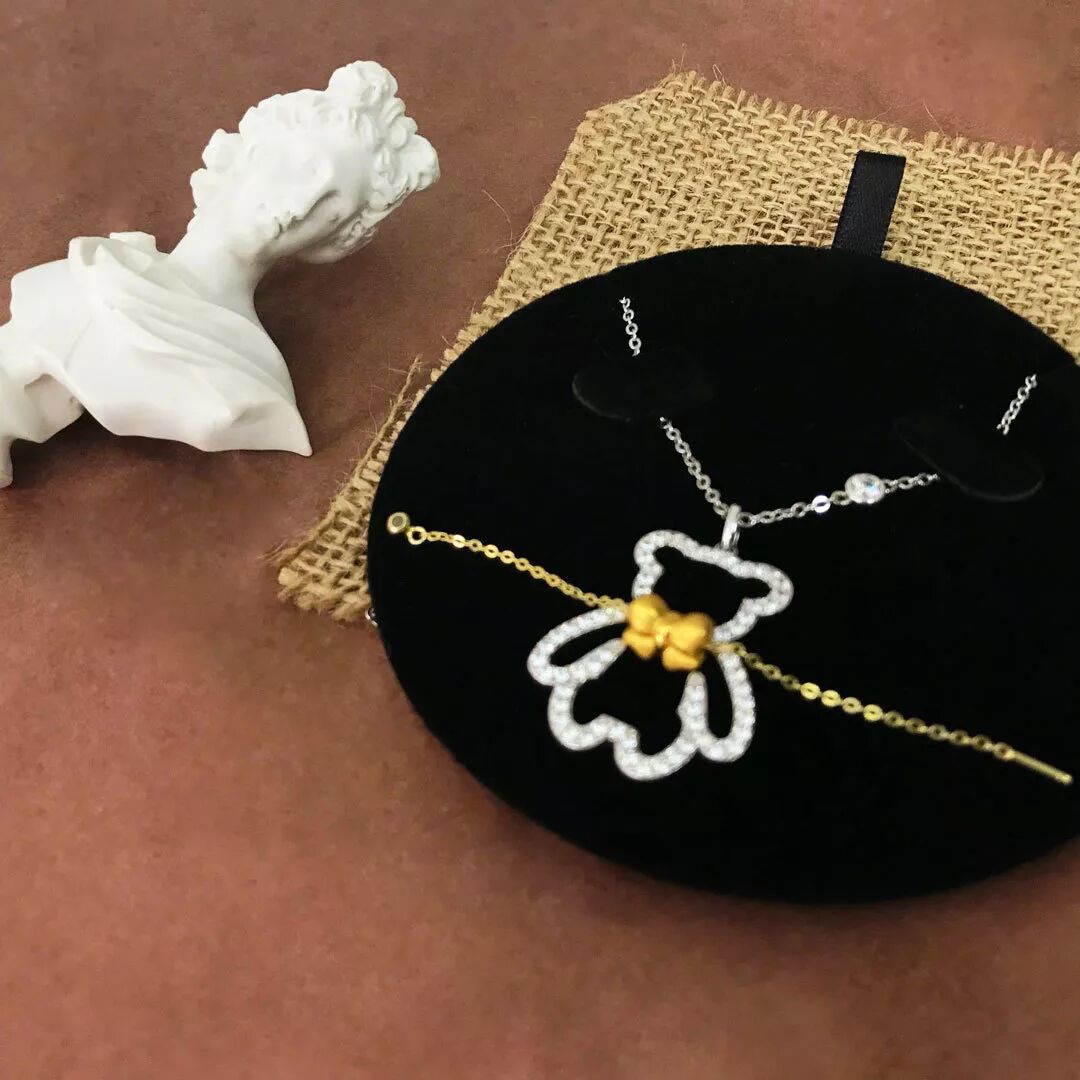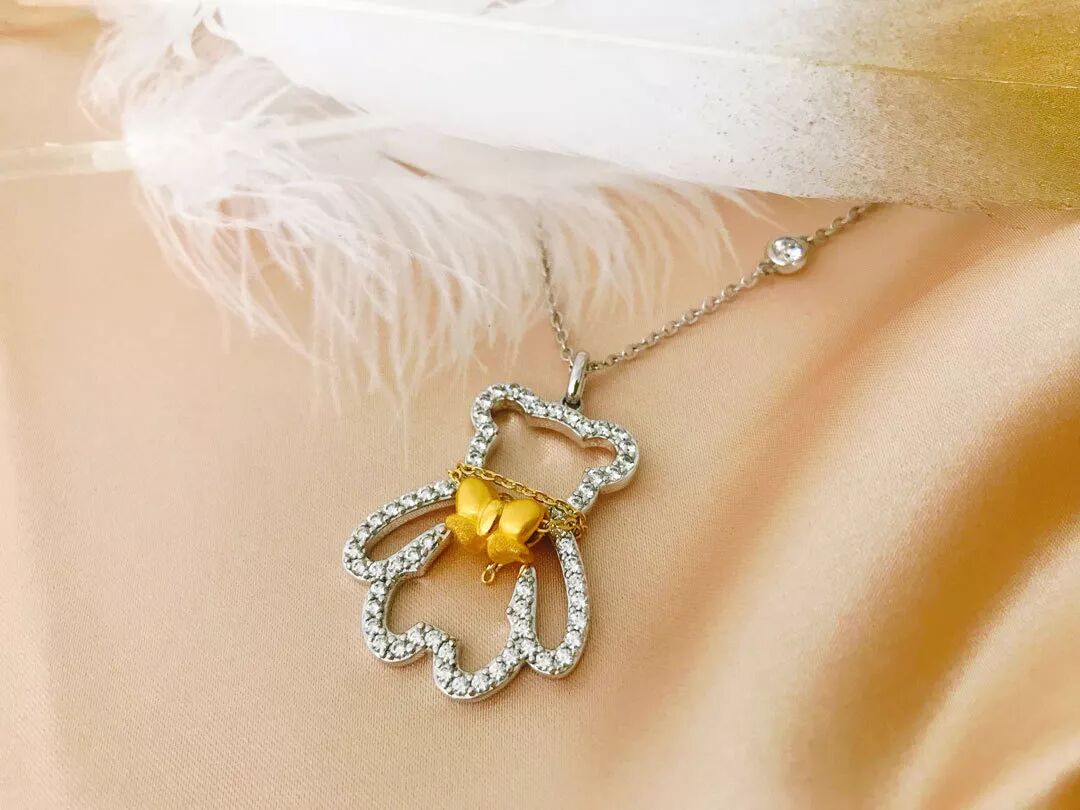 当代女性坚强自信,独立有内涵,在职场之中,涌现出众多女性。作为一名现代ol,不仅要有出色的工作能力,职场上的仪容仪表也非常重要。职业女性日常服装服饰打扮,除了着装以外,配饰也是提升个人气质的极佳手段。挚爱·泰迪熊多功能项链,整体佩戴,金银两色,稳重之中透露出一丝俏皮韵味,非常适合出入职场的年轻女性。