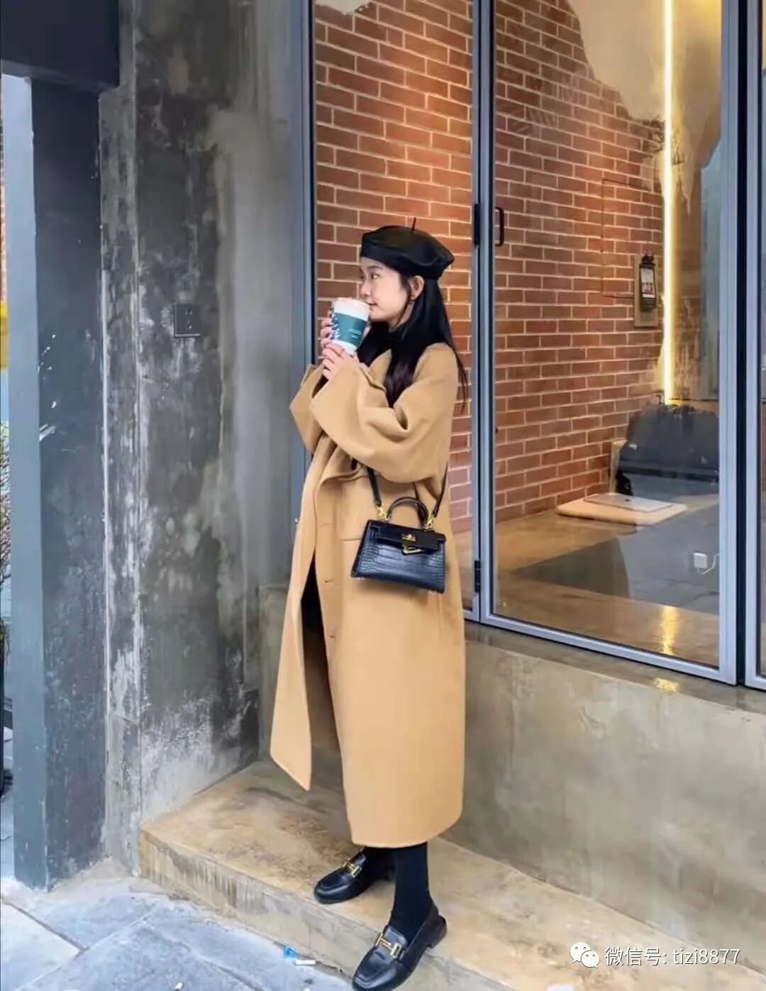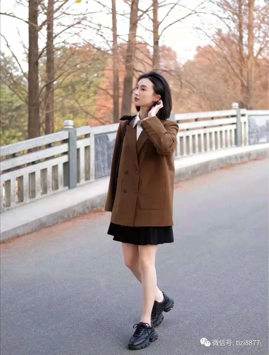 155矮个子女生春季穿衣搭配:驼色算是一个中间色,不挑肤色不挑身材不挑人群,比较经典的搭配法就配黑色,配饰选择金属色,会显得非常高级。