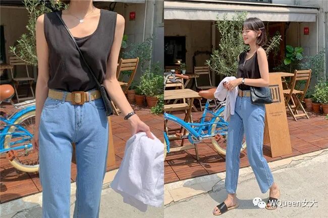 比起那种会大面积晒肉的细肩带背心,小编个人会更推荐宽版肩带的背心,不用担心内衣会露出来又能修饰肩宽,搭配那件修身的直筒裤,搭配皮带来强调腰身,带点随兴的自在风格。