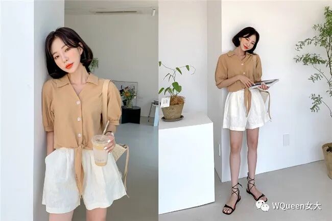 这套组合就让我们称它「度假穿搭」吧!浅色系的衬衫搭配夏季消暑穿搭必备的亚麻短裤,稍微飘逸的材质带出悠闲的女人味,小编这边也要提醒各位,因为这类材质的裤子也比较透,所以内裤颜色还是以浅色、无痕的,这样才不怕尴尬喔!