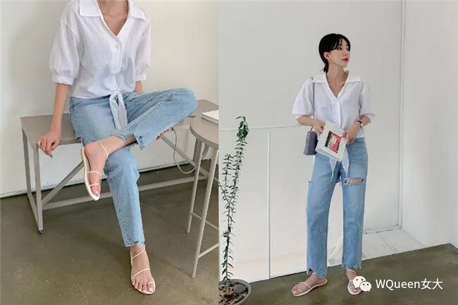 碰上高温的夏季,你可以挑选像是亚麻材质的衬衫,有些下摆还会有绑带设计,把原先微正式的衬衫变得活泼起来,当下身搭配直筒裤时,与其穿上那双天天在穿的白球鞋,小编更推荐你穿上可以大露脚背的细肩带凉鞋,气质美又消暑。