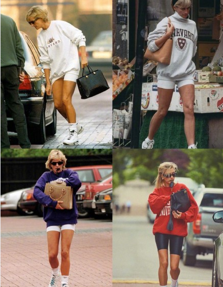 提到Athflow风第一个想到的就是黛安娜王妃,一开始为躲避狗仔关注而穿的彩色卫衣与骑行裤装扮,却在不经意间成为经典造型。