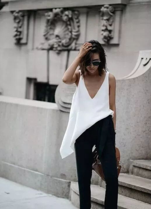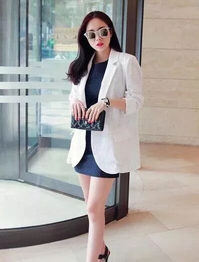 熟女夏季真丝搭配示范完整的中性风格,真丝的材质华丽,容易显得柔美,建议搭配比较中性的西服或者衬衣,只要是中性风格的单品都能够混搭出彩。硬朗和柔美相互搭配不但不会老气,反而非常时髦。