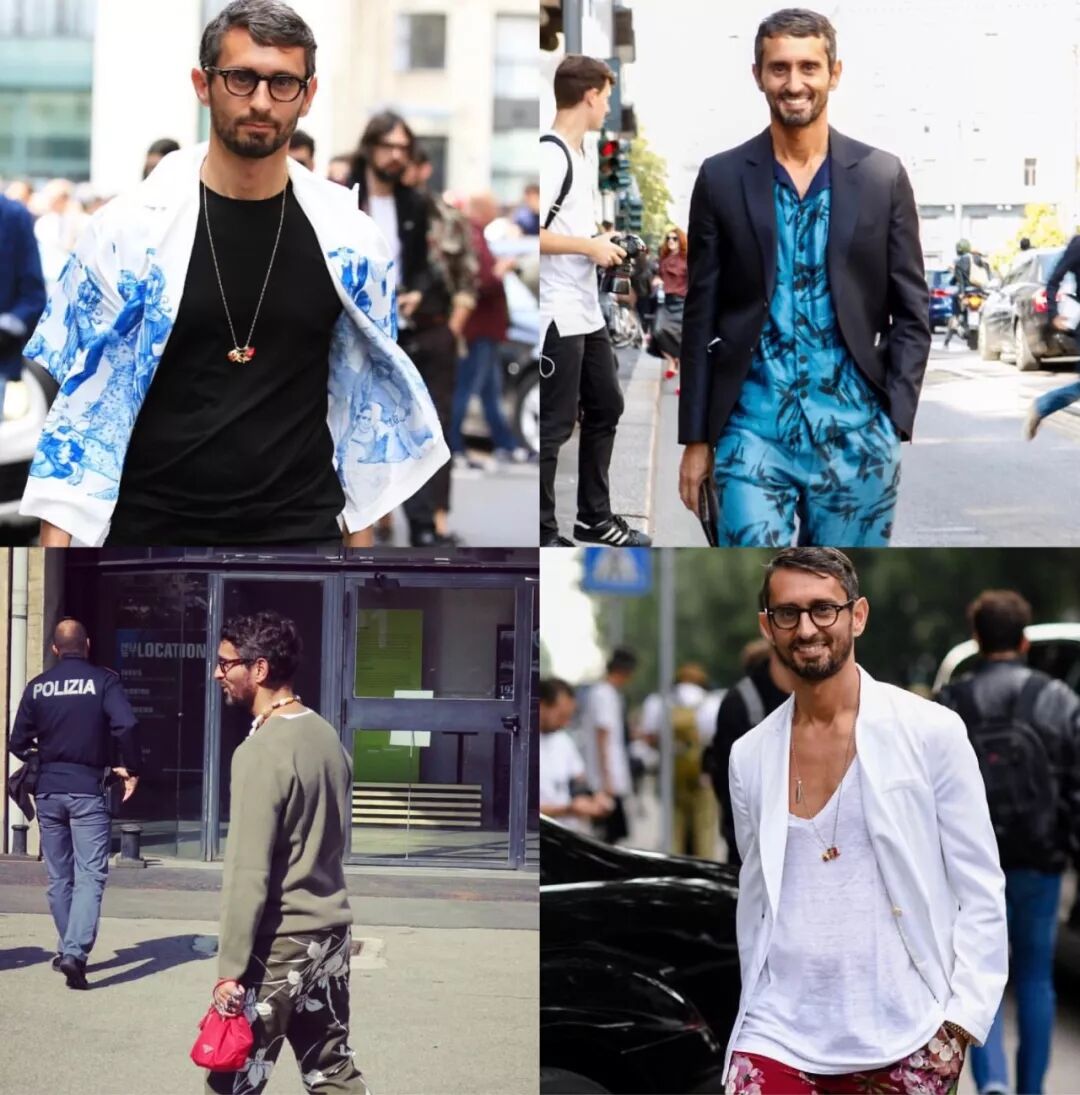他是意大利《La Repubblica》和《Affari&Finanza》的资深时尚记者,被圈子里的人私下叫做男版“AnnaDello Russo”,因为他总是爱穿秀款单品,钟爱艳丽的色彩和花哨的图案,因此也获得了“印花之王”的title。但是值得注意的是,他虽然穿秀款,但穿得并不土豪,除了他本身温文尔雅的暖男气质撑腰之外,他还非常知道用生活化的单品和简单的中性色化解秀款的夸张。