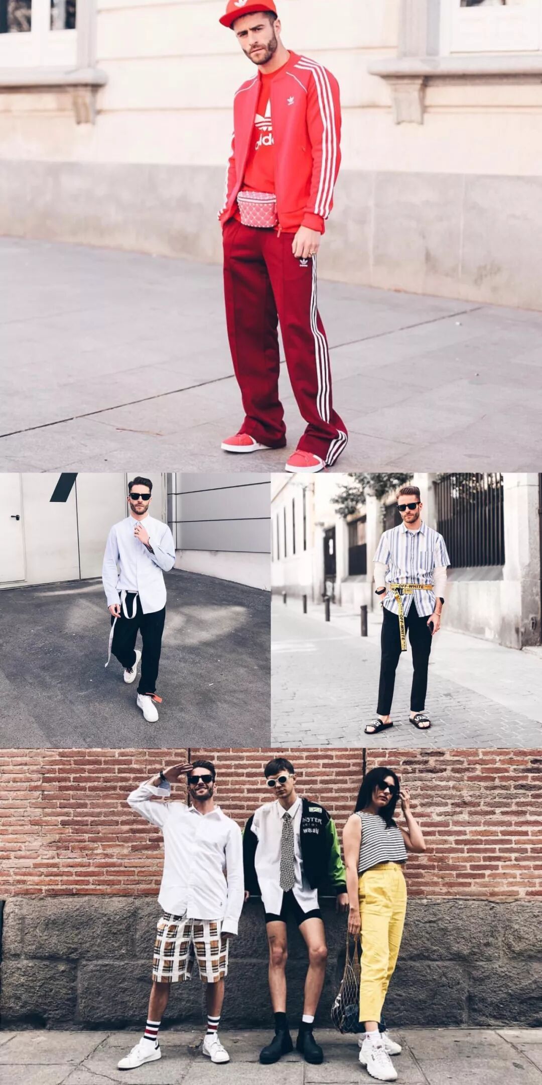 在风格上,可以遵循复古老爹风的搭配,用老爹鞋、侧边运动裤来搭配,也可以走街头风,因为这种单品在现在已经没有严格意义上的风格要求了。