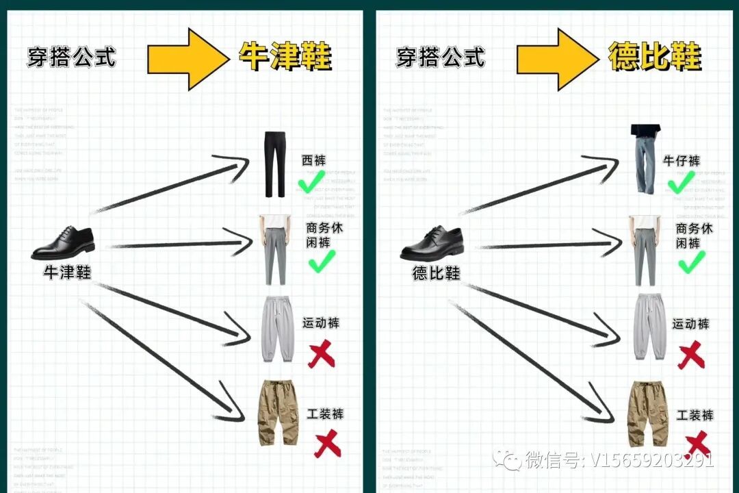 牛津和德比是一种非常正式的鞋子,它的款式和材质都非常考究。可以搭配西裤和商务休闲裤,九分裤西裤。皮鞋搭配裤子的技巧是要注意裤子的款式和颜色是否与皮鞋相符。如果你的皮鞋是黑色的,那么建议选择黑色或深色的裤子,这样可以让整个搭配更加稳重。如果你的皮鞋是棕色的,那么建议选择浅色的裤子,这样可以让整个搭配更加清新。