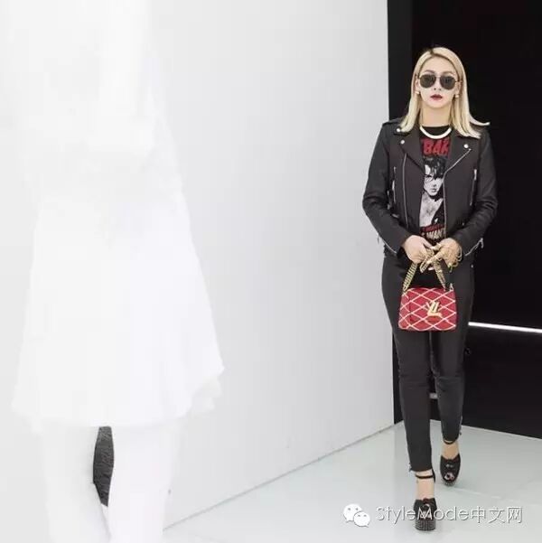 讲到朋克风穿搭,就不能不提到2NE1的团长CL,她用色大胆又带有轻朋克的穿搭,也是许多热爱酷酷暗黑风格的女孩们模仿的对象!以冬季基本的夹克做搭配,里面穿的竟然是充满美式风格的大红色印字背心,这冲突的搭配真的好帅!