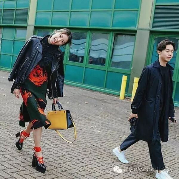 除了一般穿搭就需要在整体造型里找出重点以外,注重个人风格、精神的朋克穿搭更在意这个部分!就像时尚博主Irene一样,选搭深色基底衬上大玫瑰花的连衣裙样式,让整个人亮起来!除了连衣裙,从鞋款上的红色系带、鲜黄色的包款选搭,每个细节都是亮点十足!