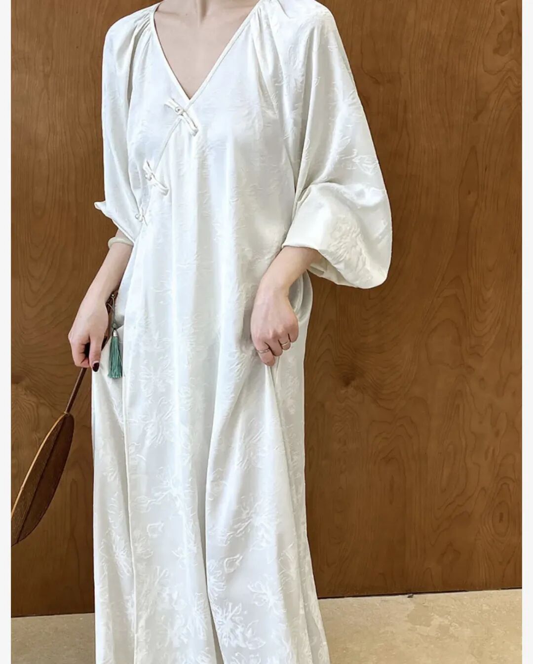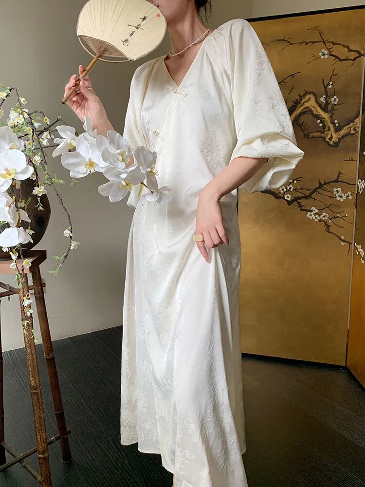 无论是在阳光下还是室内,都能散发出迷人的光芒!令人惊艳的莫过于那珍珠盘扣的点缀,每一颗珍珠都经过精心挑选,光泽圆润与盘扣结合既有传统的韵味,展现出独特的魅力,又不失现代的时尚感!