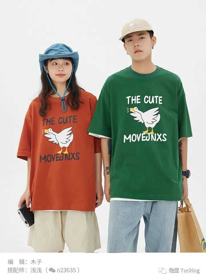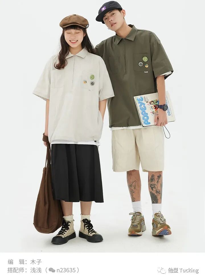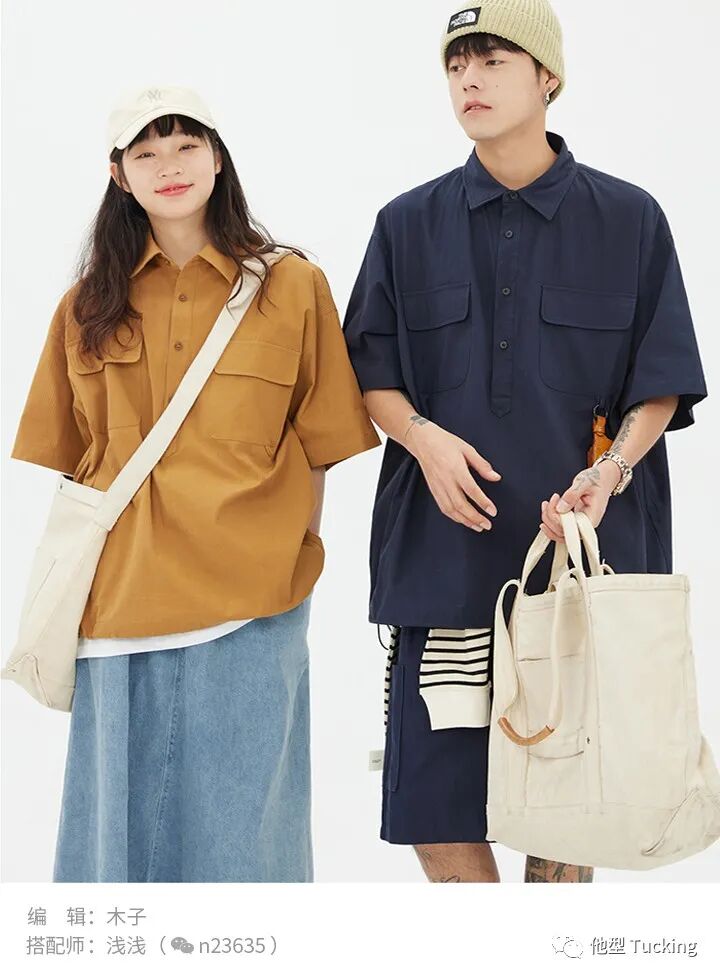 这是最简单直接的情侣装穿搭,上身穿一样的服装,一眼就看得出这是情侣装穿搭。