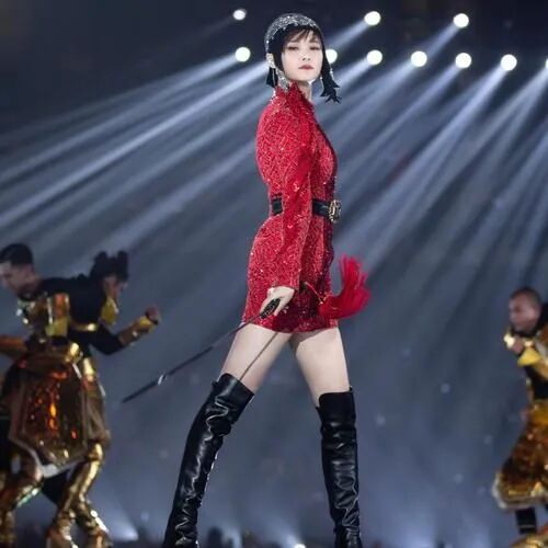 现在看到的李宇春再也不是当初那种看男生的眼神了,现在李宇春也开始走女神化,身上也是多了非常多女人味,下图照片中,李宇春穿了一件亮片酒红色款式的长袖连衣裙,搭配黑色长靴更是凸显了腿长的魅力!