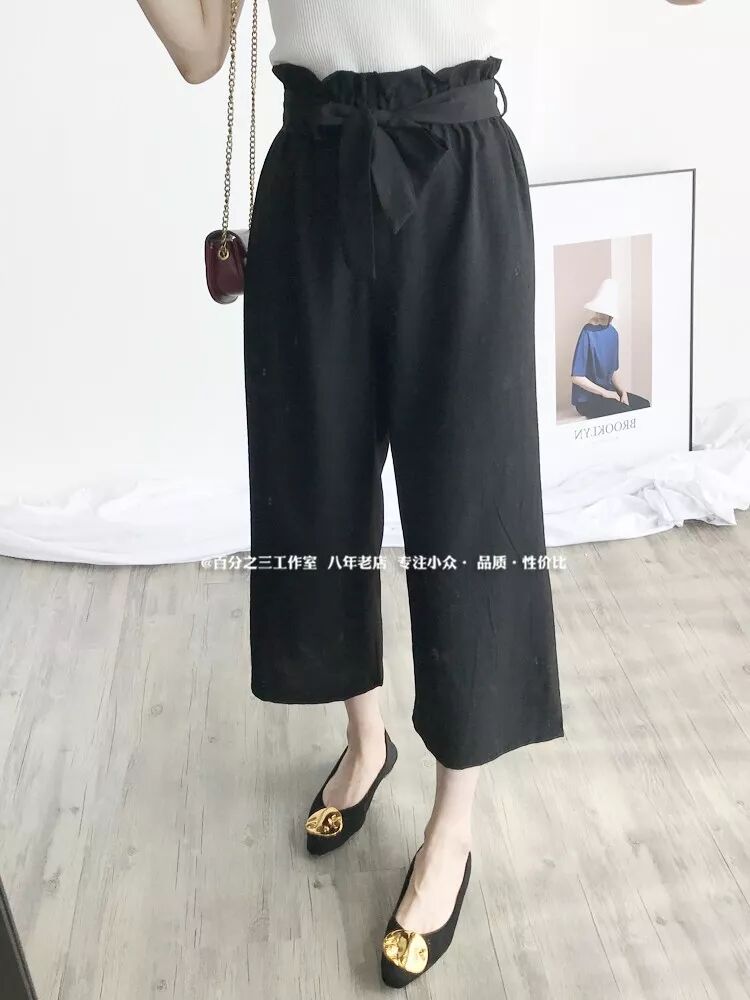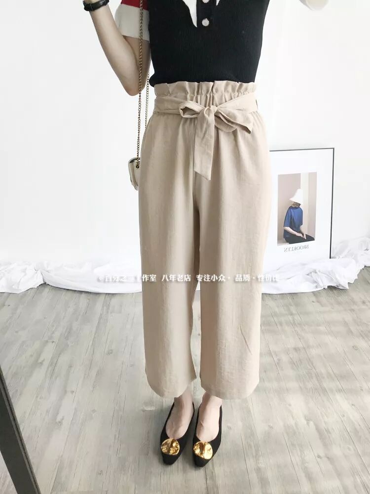 8.5 百分之三 强推!抬气质 通勤休闲两不误 棉麻显瘦高腰阔腿裤¥NjGbY7Ageck¥