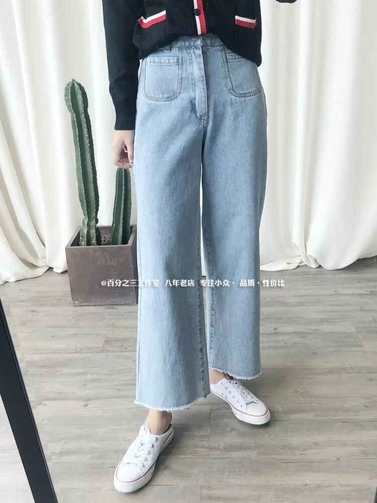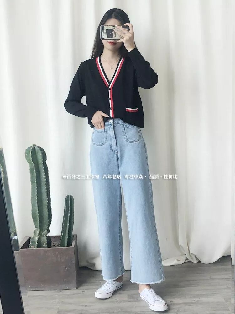8.5 百分之三 来条好质感的!挺括水洗复古显瘦微喇叭牛仔阔腿裤¥77UfY7Agq74¥长按识别二维码打开