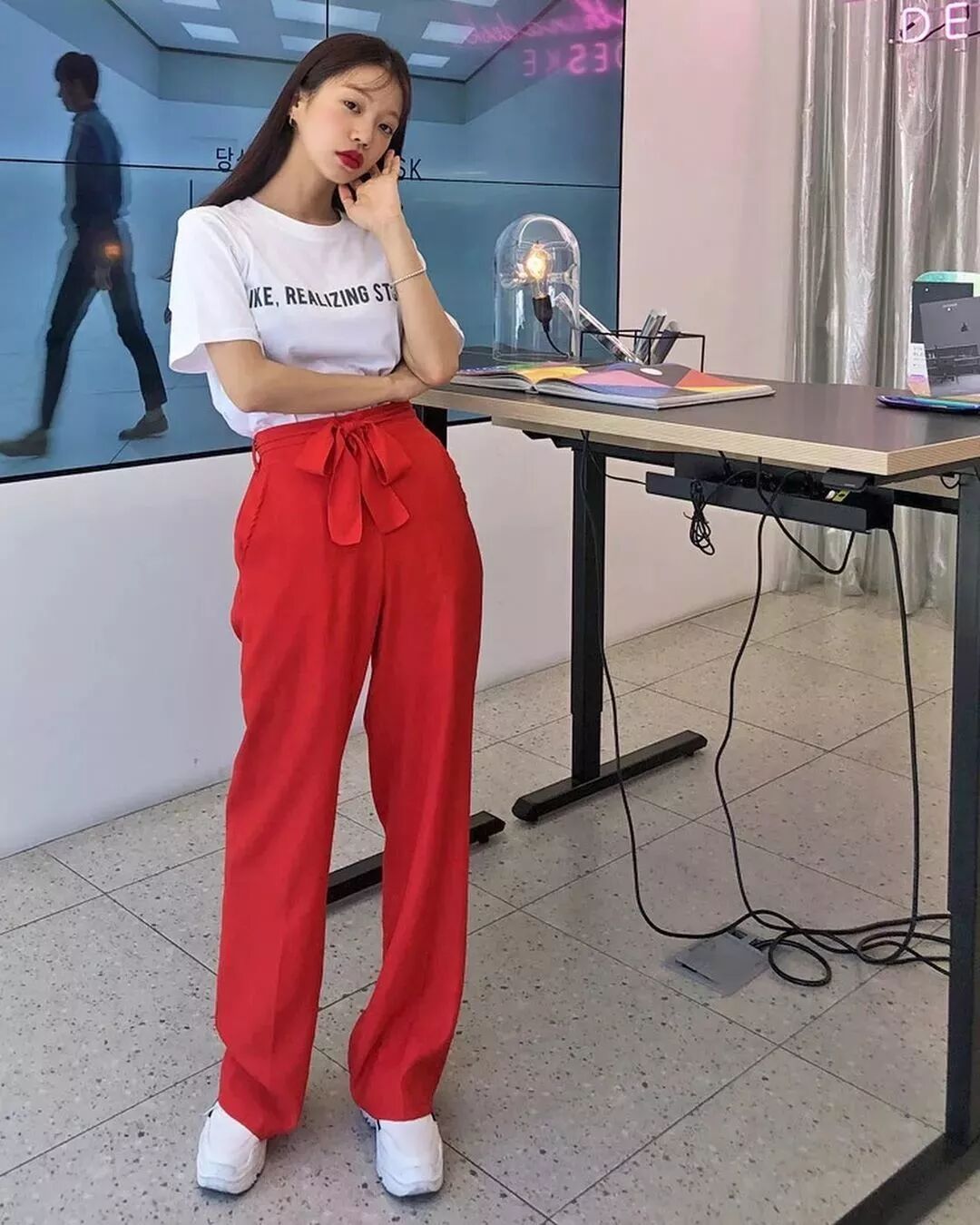 加入高腰阔腿裤+小黑鞋组合,时尚无敌