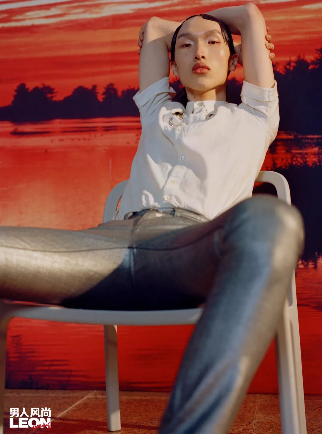 李强●黑色丝绸衬衫,黑色西装裤/均为 Dior刘浩●白色刺绣短袖衬衫,银色长裤,黑色高筒皮靴,银色手镯/均为 Saint laurent