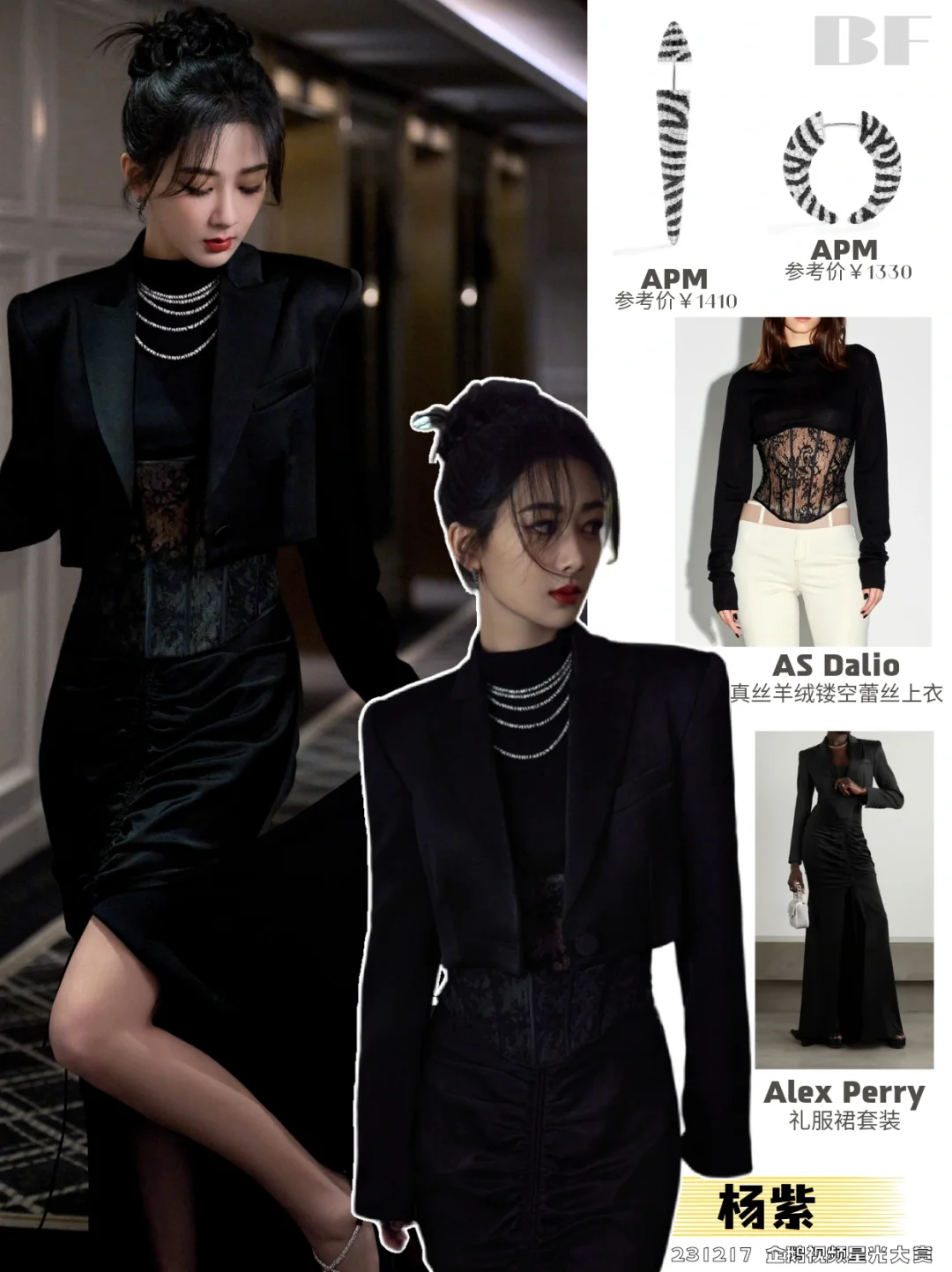 图中杨紫展现了一身全黑的性感高贵造型,将优雅与力量完美结合,彰显出她独特的魅力。