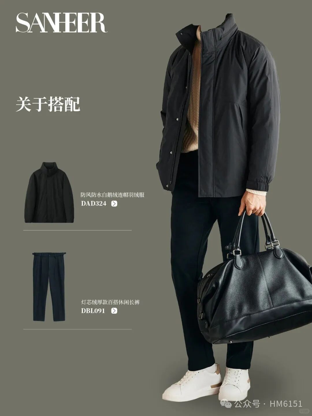 下半身选择一条黑色气凝胶加厚休闲裤,保暖又舒适。气凝胶作为一种新型保暖材料,不仅提升了整体的保暖性能,还能让你的腿部线条更加流畅。