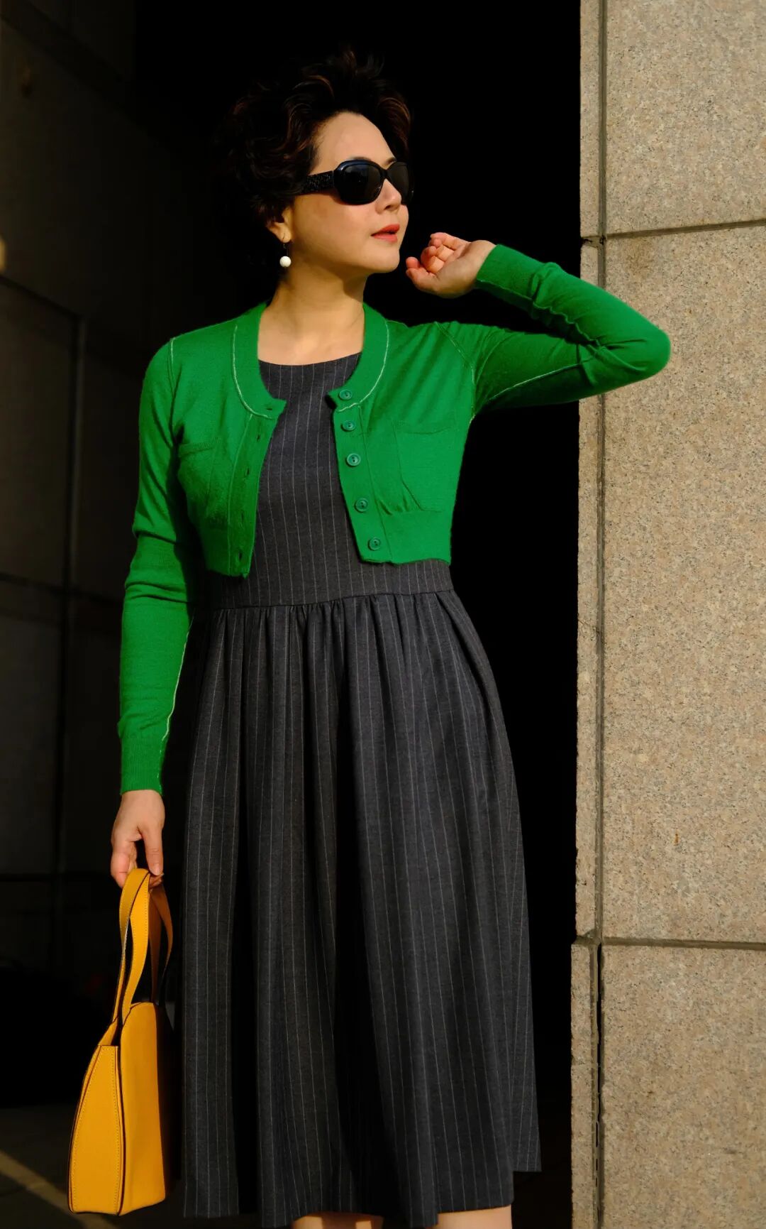 竖条纹服装也是小个子穿衣的不二法则。无论是宽的还是窄的,竖条纹都有助于拉长身型。