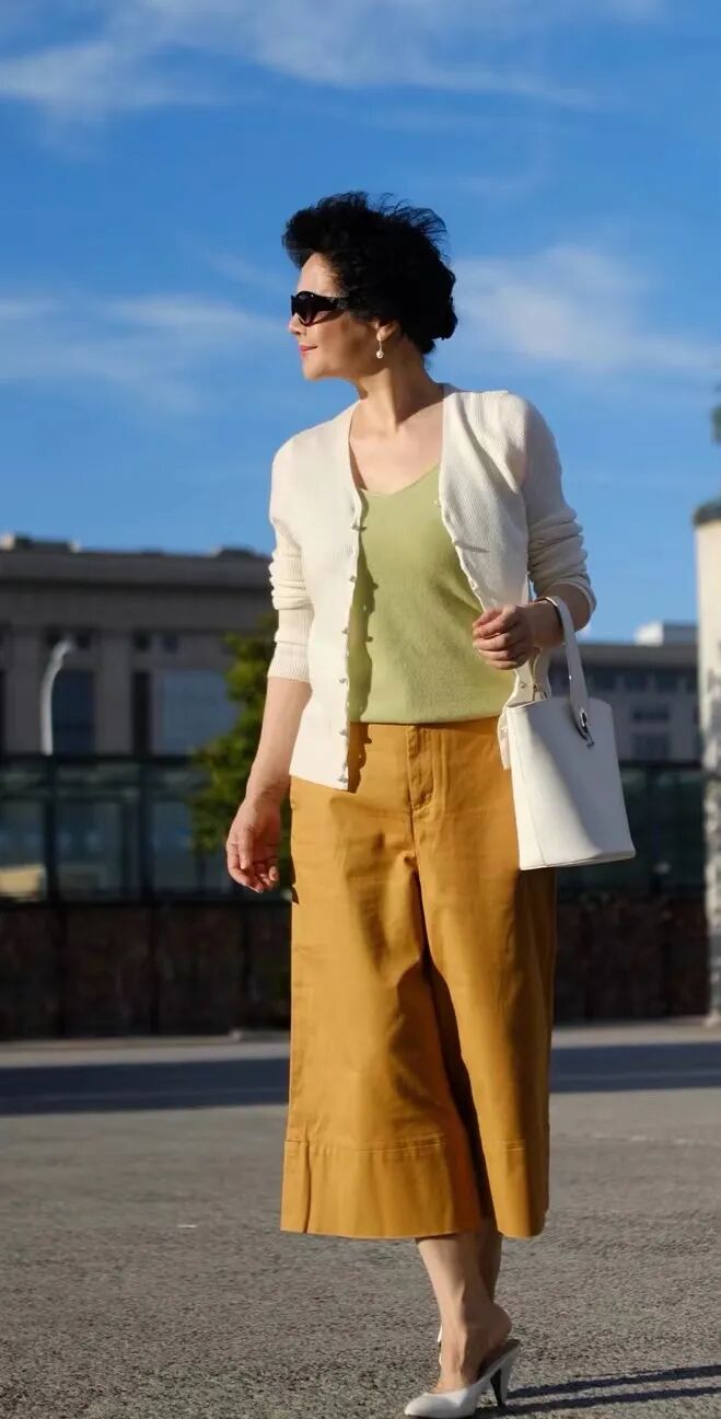 当然,如果你平时喜欢休闲装,穿着那些最简单的衬衫、T恤、吊带,也不用脚踩恨天高刻意拉高自己。带着放松的心态,即使是平底鞋,也能穿出强大的气场。