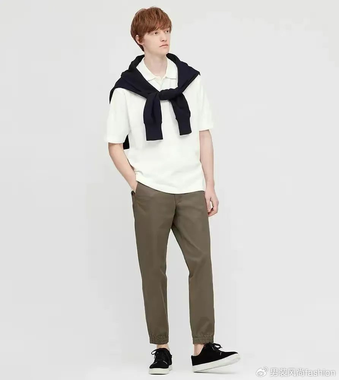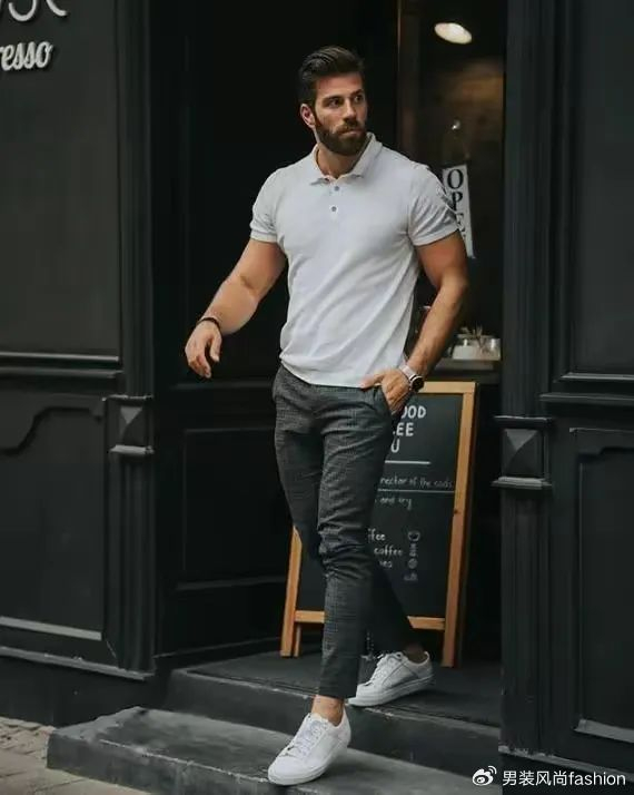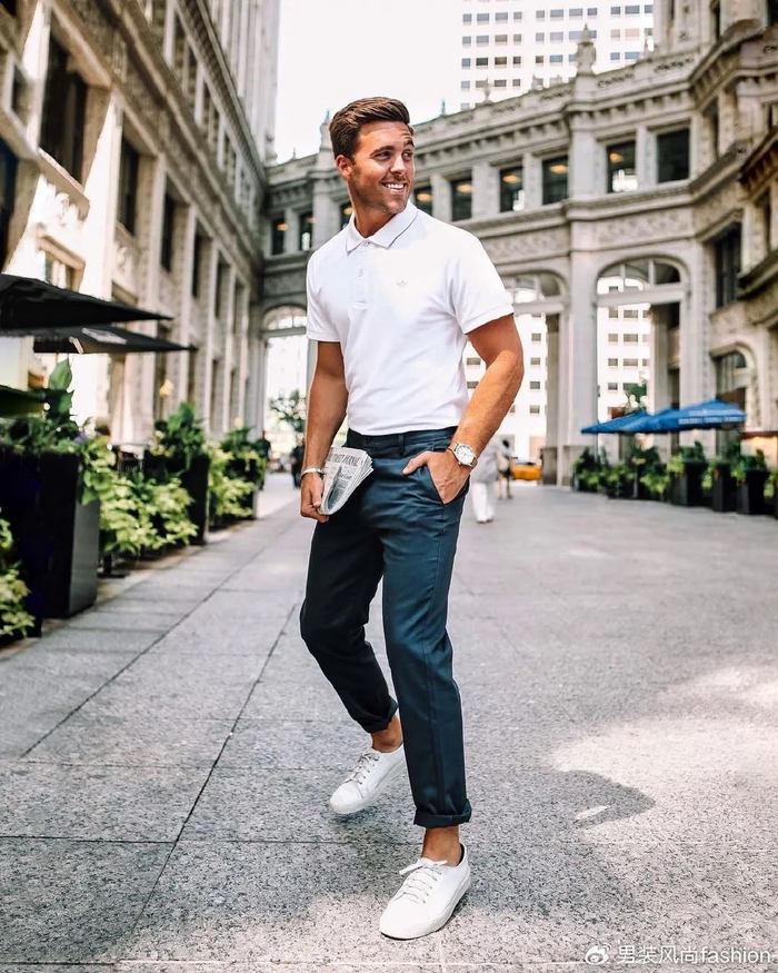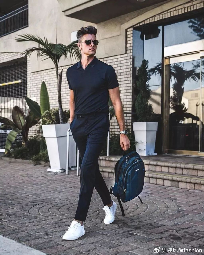 选择一款黑色深咖或深蓝色的Polo衫,搭配一条笔挺的西裤和一双要棕色皮鞋或白色休闲鞋,既能展现出专业形象,又不失时尚感。