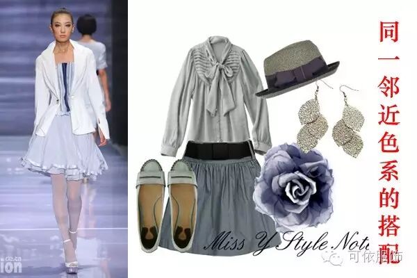 2、 上下装的颜色要相近搭配,属同一色系,反差太大,对比太强烈都不好。上下身不同颜色的衣服也可以穿,但要注意颜色面积的比例,上下身颜色的面积比例以2:3或3:2为宜。最好上浅下深,把别人的注意力引向头部或肩部。