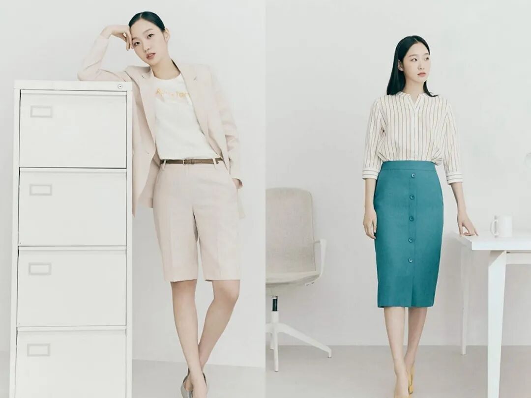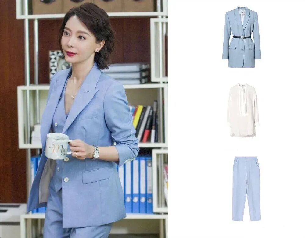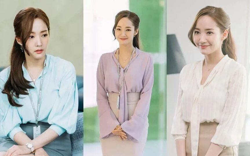 韩剧《金秘书为何那样》中女主角朴敏英的穿搭堪称“职场教科书”。她在剧中就有很多浅色系的搭配。